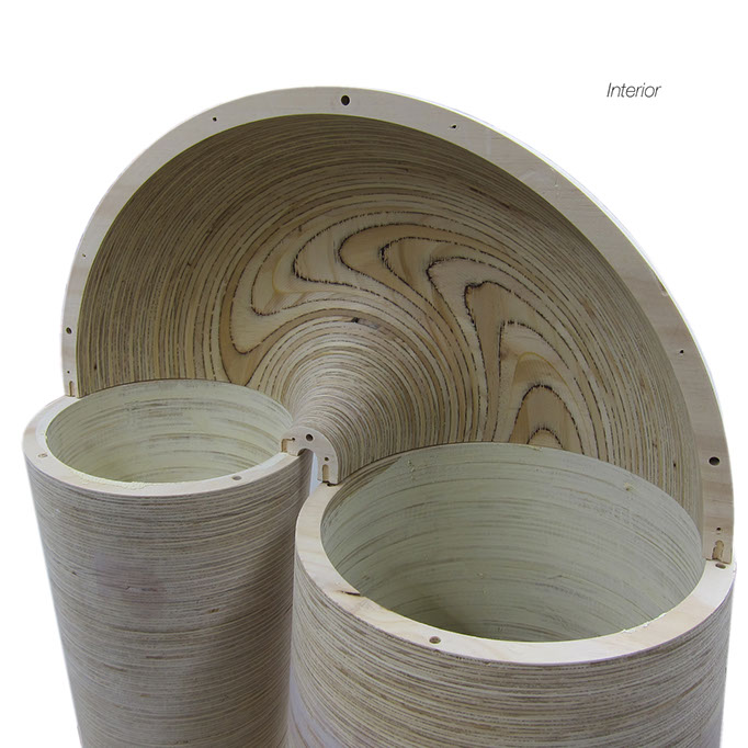 Research/Development of the Lumaca cabinet took over a two year period. If the cabinet was to be made out of plastic, MDF, or other composite material, shaping and molding would not be so difficult. However when using pure hardwood and birch plywood, creating concentric wood patterns are next to impossible. Extreme and careful measurements are critical to ensure each piece is cut to an absolute tight tolerance. Many layers of birch plywood along with thousands of tool-paths to construct the seamless tractrix horn structure. The result is a delivery of astonishingly pure, natural and unadulterated presentation of music.