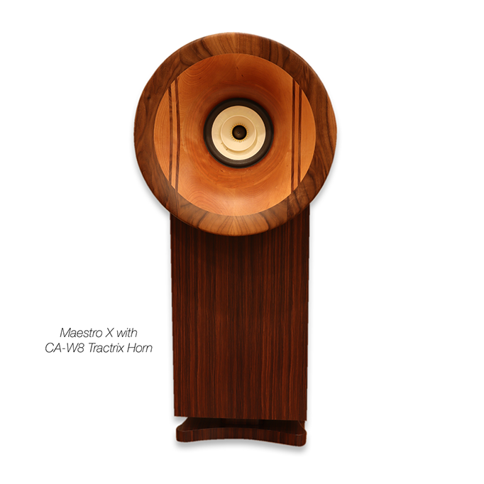 The introduction of the Maestro Series is for any music lover on a budget to experience Charney Audio's tractrix configured loudspeaker system. The Maestro series utilizes the same horn theory, parameters within its well engineered but, simple and effective cabinet, as its bigger and larger models. The Maestro's emotional grabbing ability in transporting vivid live dynamic music to the listener, even in the smallest room without giving up that rich, full-range and full-bodied sound, that true music lovers seek. The concept of this speaker design is for small to medium size rooms, using minimal floor space, it can also be placed traditionally but, closer to back walls, totally out of the way. The tight natural bass effortlessly exits from the bottom of the horn.