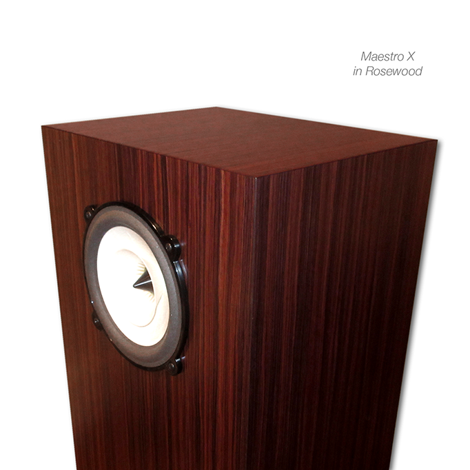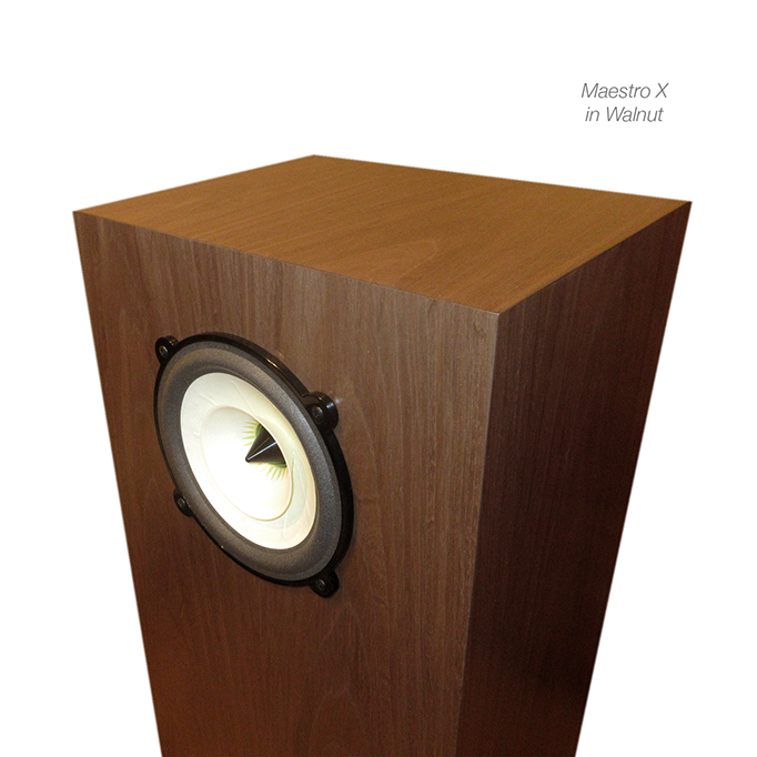 The Maestro Extreme (MaestroX) 6” deeper, is a corner-free placement speaker, designed for standard speaker placement in rooms up to 14Ft. in widths, basically medium to even larger size rooms.