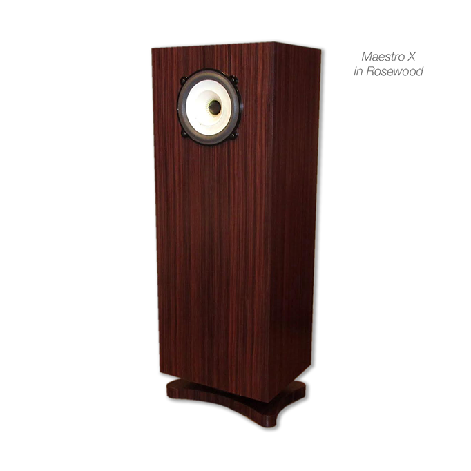 Both using the 8" Voxativ AC 1.6 or many other 8 inch drivers. The Maestro will thrill you with clean, healthy bass down to 38Hz, and the most crystalline treble extension all the way up to 22kHz, with a sensitivity of 101 dB @ 8 Ohms.