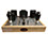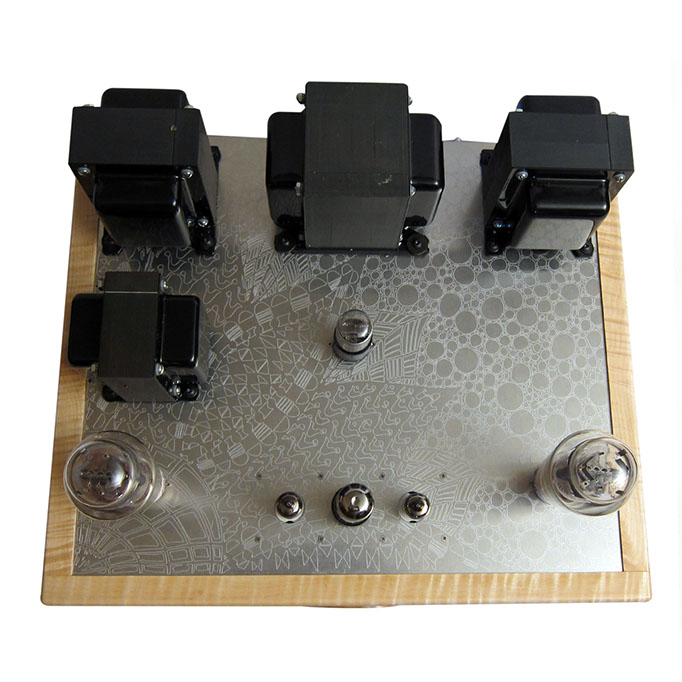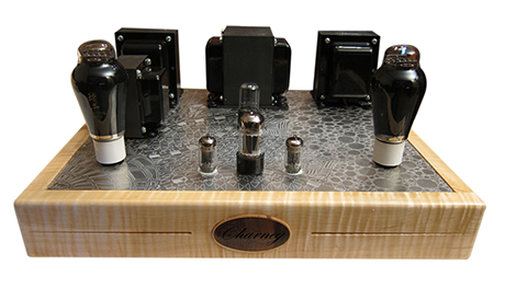 Our Integrated 300B Amplifier derives from an already excellent proven circuit. To start off we use some of the best output transformers in the business which in our opinion is the heart of an amplifier. On top are two directly heated 300B triode output tubes running in single ended class "A" without negative feedback. The 5U4G rectifier tube takes care of the power supply duties, two 5687 driver tubes and a 6SN7 input stage tube in front of the 300B. We use all high grade resistors and electrolytic capacitors in the circuit and signal paths. Point to point wiring is also used to once again achieve the best level of sound. All chassis can be custom made to your choice of hard woods and the top plate can also be designed to whatever you may have in mind. Manual volume control is standard with the option of a Remote.