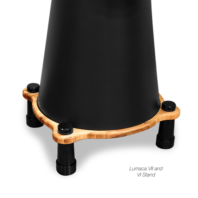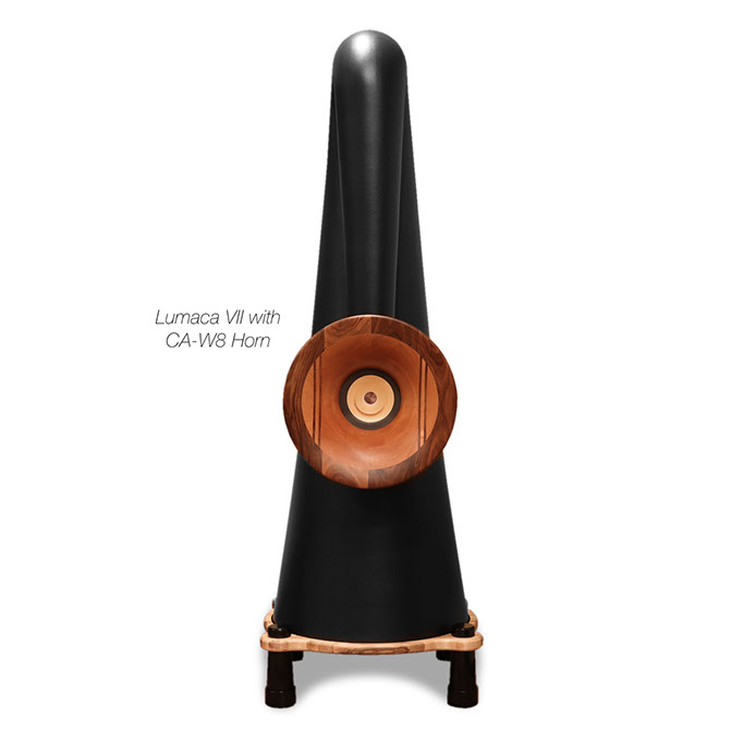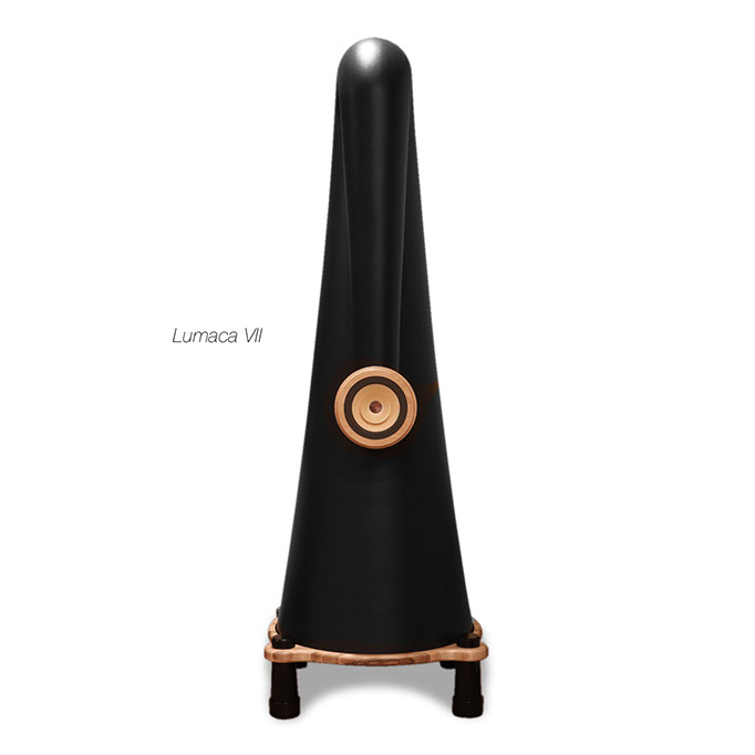 The Lumaca 8 design comes with a 45 degree cutaway at the bottom, facing the rear wall. The Lumaca 7 and 6 is designed with an open bottom design that allows bass to exit 360 degrees around the bottom of the horn effortlessly delivering incredible 3D soundstage.